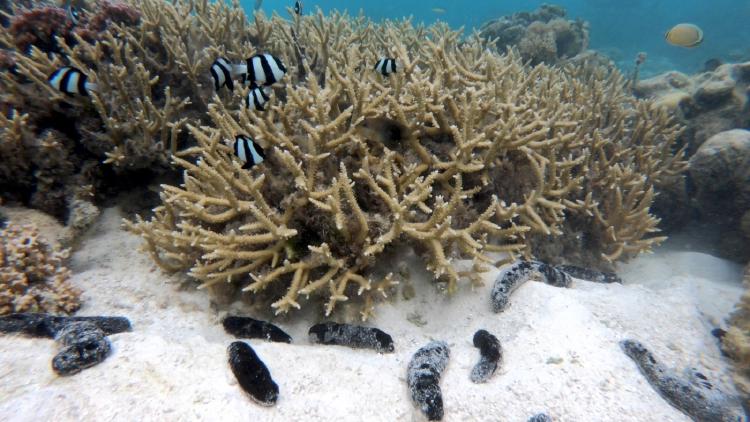 Sea cucumbers benefit staghorn coral by cleaning harmful microbes, pointing to conservation efforts to restore coral health.
